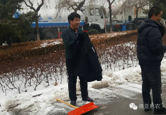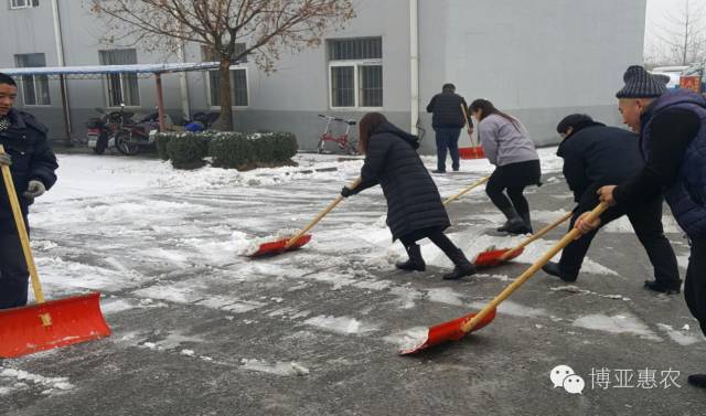 大家不畏嚴寒,積極參加,紛紛拿起鐵鍬和掃帚,一點一點地把積雪集中堆放,然后再用車把積雪運出去。整個掃雪過程中,大家配合默契,干的熱火朝天,不亦樂乎。每個人都把公司當成自己的家,每個人的臉上都洋溢著最簡單的微笑,勞動的熱情和團結的力量讓這個冬日變得格外溫暖,忙碌的身影形成了一道美麗的風景。經過一個多小時的奮戰,積雪全部鏟除,我們開辟出一條洋溢著溫情的通暢之路。